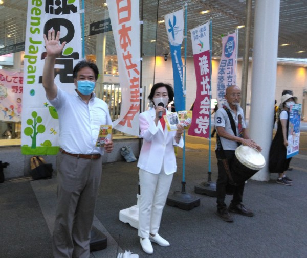 国会・活動報告 活動報告 2023年7月10日 市民・野党共闘 街頭演説 川崎駅北口で、なんてん~神奈川10区の会~の宣伝。通りがかりの若い人も飛び入り 7月10日、川崎駅北口で、なんてん~神奈川10区の会~の宣伝。通りがかりの若い人も飛び入りで参加しました。 日本共産党、新社会党、緑の党も訴え、社会民主党のノボリも並びました。 日本共産党の比例南関東予定候補として、片柳すすむ10区予定候補とともに、共闘の再構築へ皆さんと力を合わせます! このページをシェア