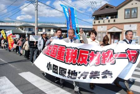 このうち小田原地方の重税反対集会であいさつした、はたの君枝さんは「国会に行って、暮らし・景気をよくする政治を実現したい」とあいさつし、消費税大増税をともにやめさせようとよびかけました。