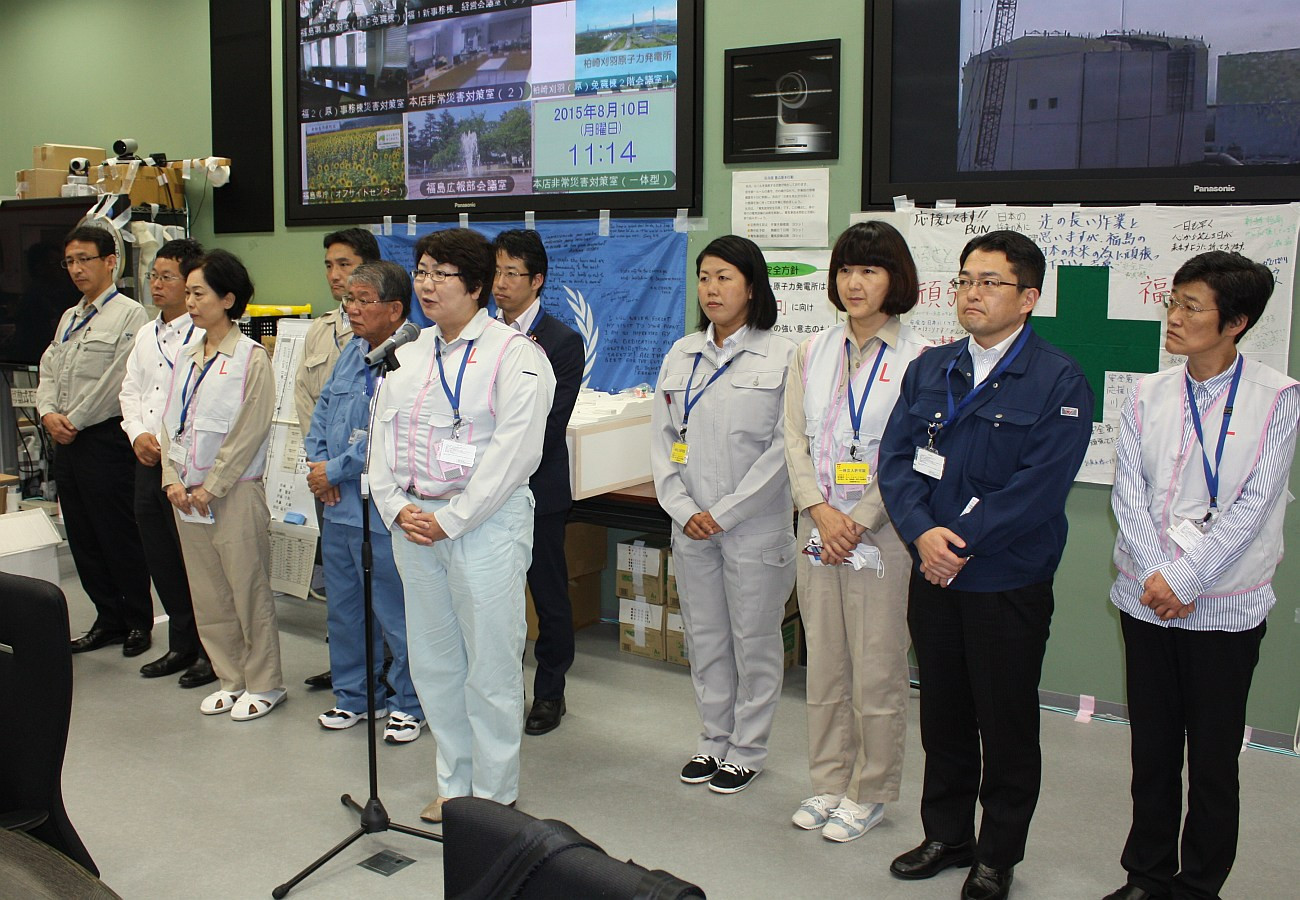 同原発では約7000人の作業員が廃炉作業に当たっており、8日には作業員の死亡事故が起きています。作業員の事故死は3人目。視察団は不十分な管理体制をただす質疑応答を行い、再発防止策の具体化など安全管理の徹底を求めました。